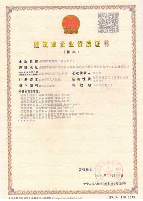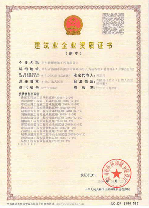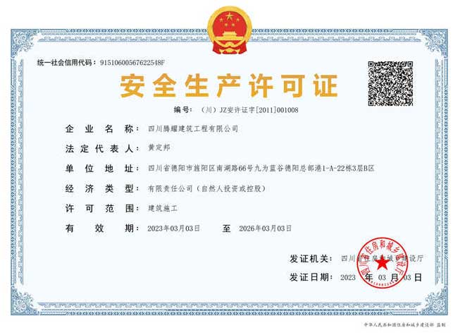 四川騰耀建筑工程有限公司  地址:四川省德陽市旌陽區(qū)南湖路66號九為藍(lán)谷德陽總部港1-A-22棟1層  電話:0838-2507855